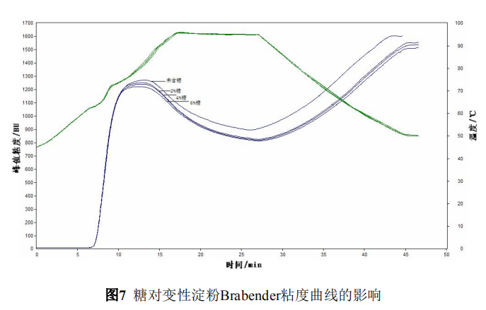 3.3 在含糖條件下對木薯丁二酸雙酯交聯(lián)變性淀粉的影響