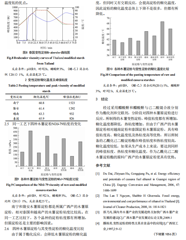 四種酯化交聯(lián)木薯變性淀粉的粘度和糊化溫度研究